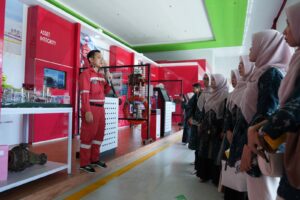 Selain belajar mengenai proses bisnis dan pengolahan minyak, guru-guru para peserta kunjungan industri dari SMKS Budi Dharma Dumai juga dijelaskan terkait penerapan aspek Health, Safety, Security, and Environment (HSSE) di lingkungan PT KPI RU II Dumai. Pemaparan terkait ini tak sekadar edukasi, tetapi juga menegaskan komitmen perusahaan menempatkan aspek keselamatan sebagai prioritas utama serta menjalankan operasi yang andal, efisien, dan berkelanjutan. Materi yang dijelaskan mencakup sistem keselamatan yang diterapkan di area operasional kilang, mulai dari fungsi sirene tanda bahaya, prosedur evakuasi, titik kumpul (assembly point), hingga penggunaan alat-alat keselamatan kerja sesuai dengan standar 10 Corporate Life Saving Rules (CSLR) Pertamina, yang diperlihatkan secara langsung saat peserta berkeliling di HSSE Demo Room Kilang Dumai.