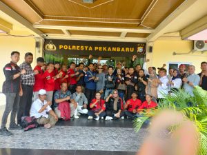 TEMPORIAU.co Pekanbaru : Ratusan orang yang tergabung dari berbagai organisasi Media, LSM, dan insan pers hari ini mendatangi Mapolresta Pekanbaru, kedatangan mereka tersebut hanya untuk meminta klarifikasi dari Kasat Reskrim Polresta Pekanbaru Kompol. Berry Juana Putra. Selasa (6/8/2024)