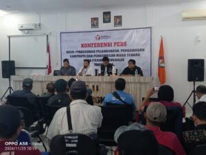 TEMPORIAU.co Bengkalis, Badan Pengawas Pemilu Kabupaten Bengkalis gelar Konferensi pers hasil penanganan pelanggaran, pengawasan kampanye dan pengawasan masa tenang pada pemilihan Kepala Daerah di Kabupaten Bengkalis, tahun 2024, bertempat di aula Kantor BAWASLU, Jalan Antara, Desa Senggoro, Kecamatan Bengkalis, pada 25/11/ 2024.