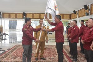 Penyerahan bendara PABPDSI dari ketua PABPDSI Riau Indra Sukri kepada Ketua PABPDSI Kabupaten Bengkalis Muhammad Afrius Naldi