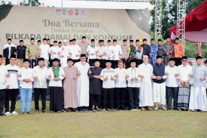 TEMPORIAU.co PEKANBARU – Sebagai ikhtiar untuk menciptakan Pilkada damai aman kondusif pada November mendatang, Bupati Bengkalis Kasmarni diwakili Wakil Bupati Bagus Santoso mengikuti do’a bersama Kapolda Riau, Selasa, 24 September 2024 di halaman Mapolda Riau.