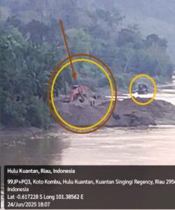 Dari temuan tim media ini, Diduga Alat berat jenis ekskavator tersebut terlihat dengan bebasnya melakukan aktivitas PETI dengan menggunakan Box tepat dipinggiran DAS(Daerah Aliran Sungai) di Kecamatan Hulu Kuantan yang masih terpantau sangat jelas dari kejauhan menghadap kearah hulu sungai Batang Kuantan diatas jembatan Lubuk Ambacang – Koto Kombu.
