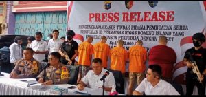 Saat press release tersebut dilaksanakan, Polda Riau menghadirkan ke 5 tersangka hingga barang bukti (BB) yang disita dari penggerebekan dua Ruko di Dumai.