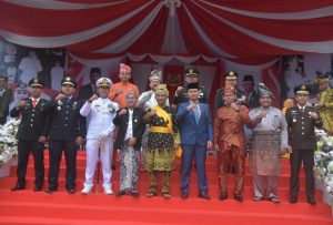 TEMPORIAU co BENGKALIS – Bupati Bengkalis Kasmarni, diwakili Wakil Bupati Bengkalis Dr. H. Bagus Santoso memimpin Upacara Penurunan Bendera Merah Putih Peringatan HUT Ke-79 Kemerdekaan Republik Indonesia, di Lapangan Tugu Bengkalis, Sabtu sore, 17 Agustus 2024.