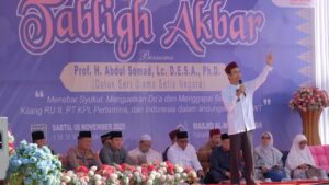 Acara Tabligh Akbar ini diisi dengan tausiah dan doa bersama yang dipimpin langsung oleh Ustadz Abdul Somad. Dalam ceramahnya, UAS menyampaikan pentingnya rasa syukur atas setiap nikmat yang diberikan Allah SWT, serta ajakan untuk memperkuat doa dan kebersamaan di tengah berbagai tantangan zaman. Ia juga menekankan bahwa keberkahan hidup akan lebih mudah diraih ketika setiap langkah manusia disandarkan pada niat ibadah dan kebaikan. Menurutnya, sikap itu bukan hanya memperkuat hubungan dengan Sang Pencipta, tetapi juga menumbuhkan ketenangan dan makna dalam menjalani kehidupan sehari-hari.