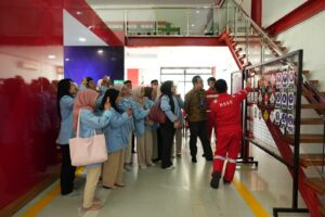 Antusiasme mahasiswa tercermin dalam sesi diskusi interaktif bersama Perwira kilang dari tim Process Engineering, Safety, dan Health–HSSE PT KPI Kilang Dumai. Mereka juga diperkenalkan dengan proses bisnis dan produk energi yang dihasilkan untuk memahami peran strategis Kilang Dumai dalam mendukung ketahanan energi nasional. Selain itu, mahasiswa juga diajak mengunjungi HSSE Demo Room untuk melihat langsung jenis-jenis Alat Pelindung Diri (APD) yang digunakan di setiap unit kerja kilang, serta dikenalkan pada 10 Corporate Life Saving Rules (CLSR) dan budaya HSSE lainnya sebagai pedoman utama pengendalian risiko.