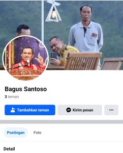 Untuk melihat secara langsung Facebook yang asli milik Wabup Bagus Santoso, klik disini. Perbedaan Facebook palsu hanya memiliki 3 orang teman, dan Facebook yang asli memiliki teman sekitar 15 ribu orang.inf