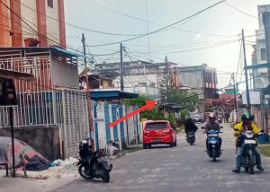 DUMAI, TEMPORIAU.co – Salah satu instalasi jaringan TV Kabel berbayar tampak kondisi menjuntai atau melorot dengan posisi melintang di atas Jalan Pepaya, Kelurahan Rimbasekampung, Kecamatan Dumai Kota, Kota Dumai.