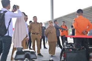TEMPORIAU co PEKANBARU, Bupati Bengkalis Kasmarni mengikuti apel kesiapsiagaan menghadapi ancaman kebakaran hutan dan lahan (Karhutla) Nasional, bertempat di Pangkalan Militer TNI-AU Roesmin Nurjadin Pekanbaru, Selasa (29/4/2025).