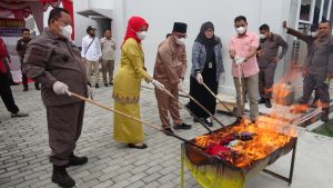 “Perlu kita sampaikan, bahwa bb narkotika yang dimusnahkan merupakan hasil penyisihan sebagai barang bukti di persidangan dan sisa laboratorium forensik yang belum dimusnahkan oleh penyidik dari beberapa perkara narkotika, sedangkan sebagian besar sudah dimusnahkan pada tahap penyidikan oleh penyidik”, jelas Kajari.