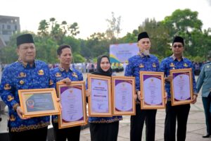 TEMPORIAU.co PEKANBARU — Pemerintah Kabupaten Bengkalis kembali mendapatkan pengakuan nasional atas komitmennya dalam meningkatkan kesehatan masyarakat. Dalam Apel Sempena Hari Kesehatan Nasional (HKN) Tahun 2025 di Halaman Kantor Gubernur Riau, Senin 17 November 2025 Bupati Bengkalis, Kasmarni, menerima dua penghargaan sekaligus. Capaian ini menjadikan Kabupaten Bengkalis sebagai satu-satunya daerah di Riau yang meraih prestasi tersebut.