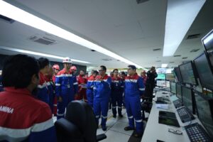 Didampingi oleh General Manager PT KPI Kilang Dumai, Iwan Kurniawan, kunjungan tersebut mencakup peninjauan langsung ke area Main Control Room (MCR) serta interaksi dengan para Perwira (sebutan untuk pekerja Pertamina) di Ruang Audiovisual Main Office PT KPI Kilang Dumai, Kamis (20/3).