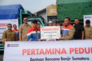 TEMPORIAU.co Dumai, 14 Desember 2025 — Kilang Pertamina Dumai kembali menunjukkan komitmennya dalam aksi kemanusiaan dengan menyalurkan bantuan tanggap darurat bagi korban banjir di wilayah Sumatra Barat. Setelah sebelumnya membantu masyarakat terdampak banjir di wilayah Sumatra Utara tepatnya Pangkalan Brandan, Aceh dan Sumut lewat bantuan yang disalurkan via Kapal Perang KRI Gilimanuk. Kali ini Kilang Pertamina Dumai memfokuskan bantuan ke daerah Palembayan, Sumatra Barat yang mengalami dampak cukup signifikan akibat bencana hidrometeorologi tersebut.