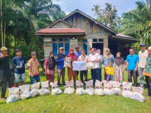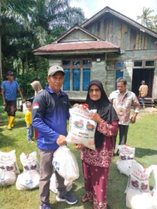 FW-RPG menyalurkan bantuan sembako gratis dari PLN ULP Bengkalis untuk warga kurang mampu di Desa Kembung Luar Kecamatan Bantan, Rabu (29/10/2025).