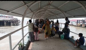 DUMAI, TEMPORIAU.co – Jumlah arus mudik penumpang domistik atau penumpang dalam negeri melalui transportasi laut di terminal penumpang Pelindo Dumai masih tampak padat ramai.