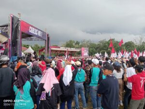 Meski sempat diguyur hujan, antusiasme para pendukung tetap tinggi. Dari pantauan di lokasi, mereka dengan semangat hadir untuk memberikan dukungan penuh kepada Paslon 01 KBS. Suasana semarak terlihat dari kerumunan massa yang memenuhi lapangan, membawa atribut kampanye seperti bendera dan poster.