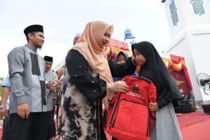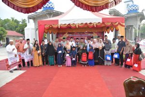 Seperti biasanya, Bupati Bengkalis Kasmarni juga turut menyerahkan berbagai bantuan dan santunan kepada pengurus masjid dan mushalla, anak-anak yatim maupun kaum dhuafa.