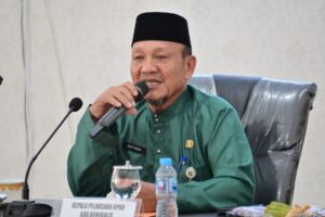 foto: Kalaksa Badan Penanggulangan Bencana Daerah Bengkalis Drs Sufandi Saat Buka Rapat Penetapan Status Siaga Darurat Penanggulangan Bencana Hidrometeorologi Kabupaten Bengkalis Tahun 2024.