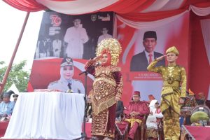 Upacara Detik-detik Proklamasi di Bengkalis berlangsung khidmat, Bupati Kasmarni Kenakan Pakaian Adat Minang.