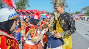 Paisal yang bergelar Datuk Seri Setia Amanah Tuah Negeri, mengenakan selempang dan keris sebagai simbol gelar yang disandangnya.